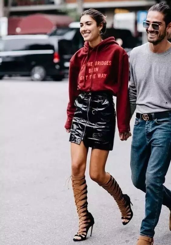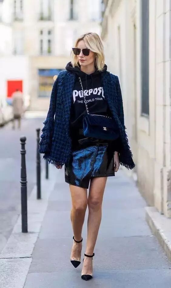 卫衣+裙子这个组合让你拥有随性风格之外还多了不少女人味。和短裙搭配不但娇俏无比,还能显腿长。▼
