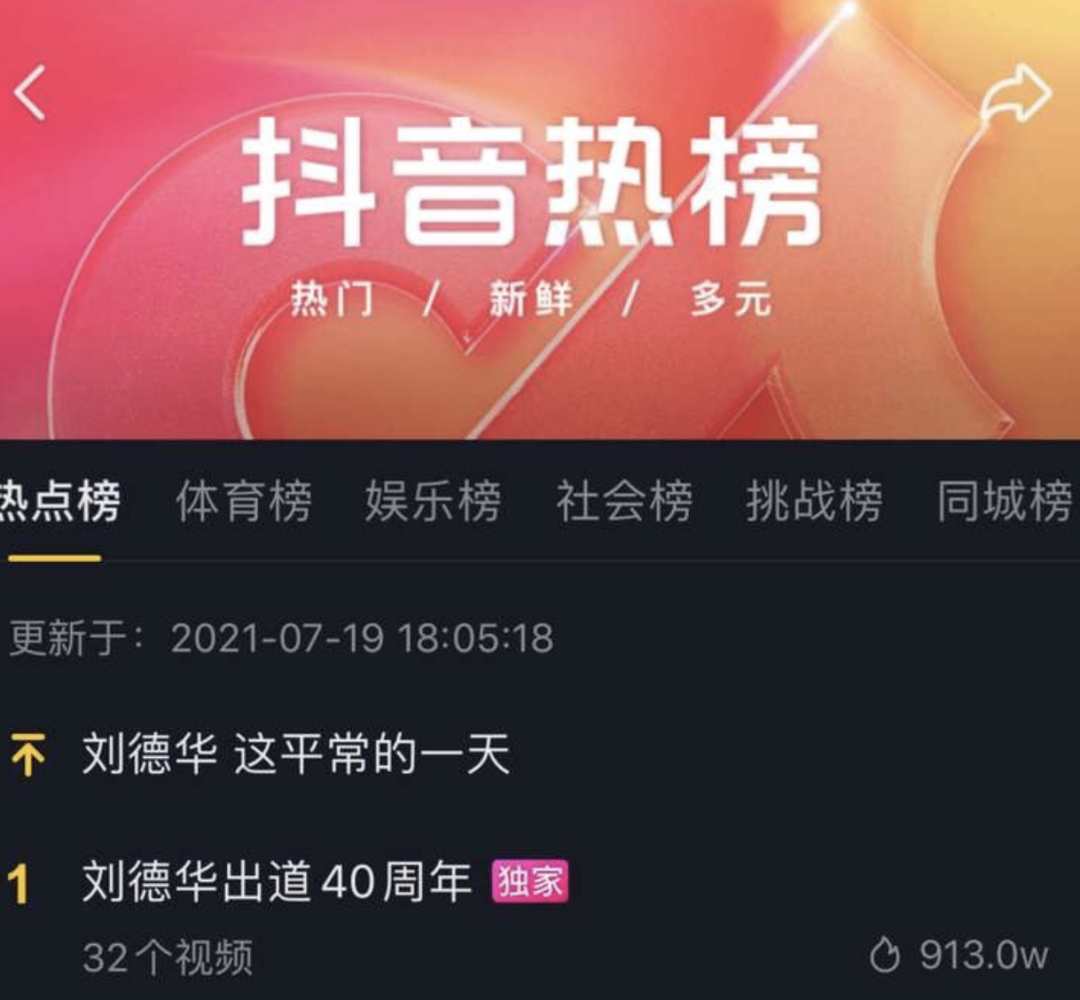这样的偶像力量,极其激励人。所以你看,他入驻抖音仅两天时间,粉丝已超过三千万,最初是许多粉丝为情怀而来,但渐渐地,更多年轻人粉上了刘德华,许多路人,也会因为看到了更“接地气”的刘德华,而关注他。