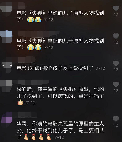 当《失孤》故事原型主人公找到儿子时,网友也第一时间留言给刘德华。