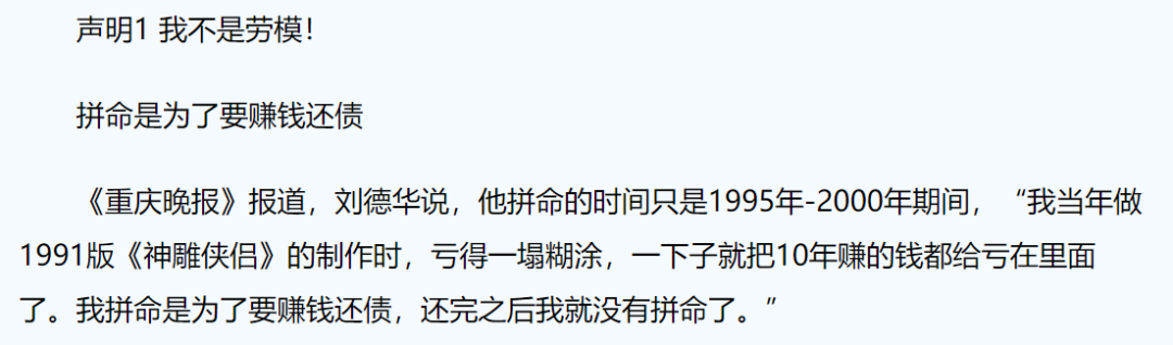 而角色类型化,和刘德华欠债有关,当年也曾投资电影,却把多年赚来的钱都亏在里面,只能拼命接戏。