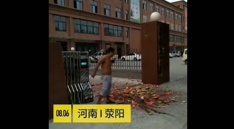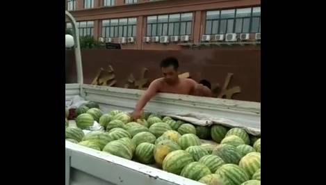 8月6日,河南荥阳市一男子在城管局门口砸瓜,他把西瓜从货车里一只一只取出,重重砸在地上,并念叨“叫你不值钱,叫你不值钱”。城管局工作人员说,男子在快车道上卖瓜被城管收了秤,当天下午他取秤时被要求写保证书,对此他有些不满,随后开始砸瓜。