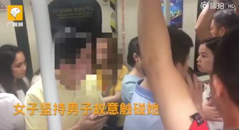 8月4号晚,在广州地铁1号线,一位女士与一男士发生争吵。女士怀疑男子对她进行了多次故意触摸,该男子否认,一直咒骂:“你以为你是美女啊”。