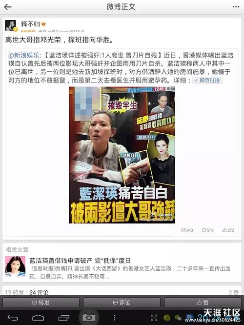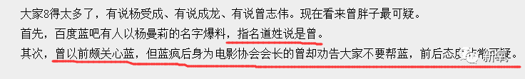 在天涯上看到旧帖子,杨曼莉是蓝洁瑛的好朋友,很多关于蓝洁瑛的爆料都是从她这里出来。2008年已经指名道姓是曾志伟了。
