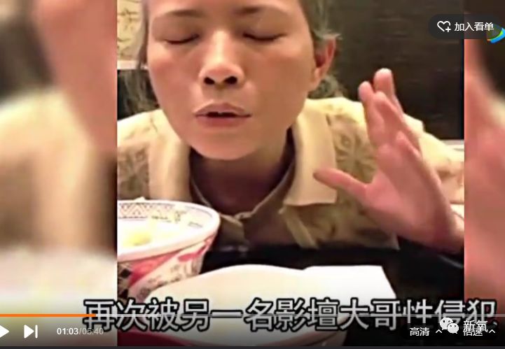 视频详细说案发地点在新加坡,对方邀请她去探班,再次被一名影坛大哥性侵。