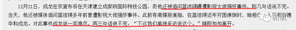 他的回应是:我知道这件事情,但没有找到她(蓝洁瑛)没办法问到是怎么回事,因为她后来又做了另外一个访问,说她没有做过这个访问(被施暴),我们都不敢说到底是怎么样,所以说我们都没办法去证实,到底是真的还是假的。