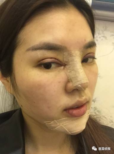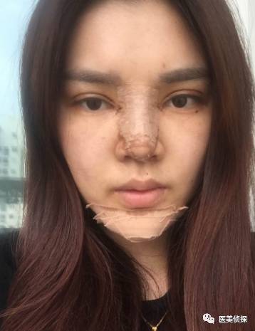术后第一天,感觉还是不错的,脸上就是肿胀,其他的感觉都没有,疼痛感很弱,要说不痛你肯定也不信的,主要是鼻子不能出气,这是比较难受的,因为习惯了鼻子出气,堵着嘟着的不舒服。