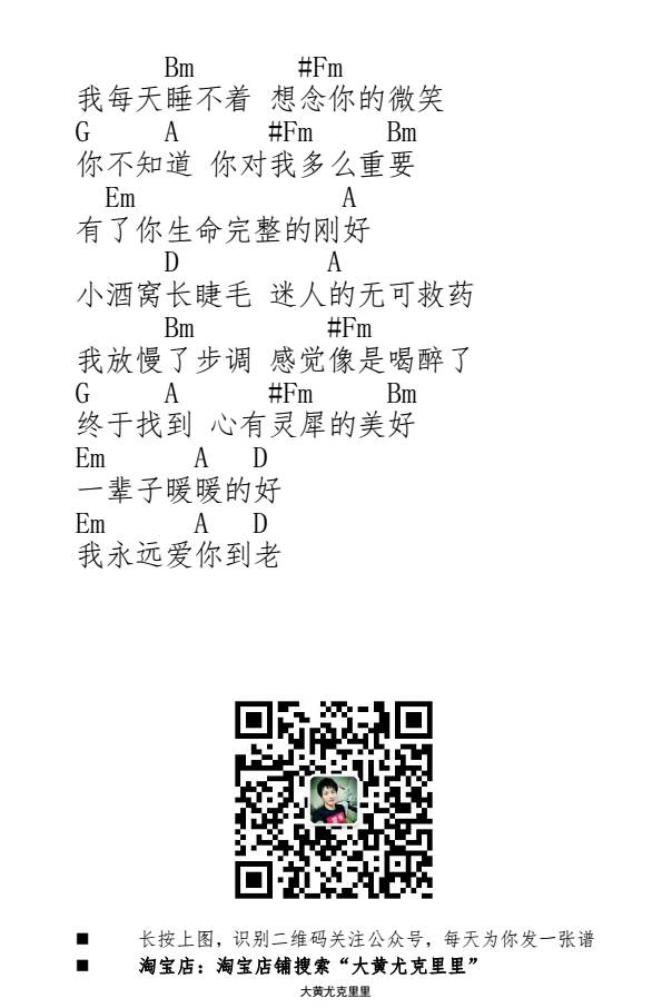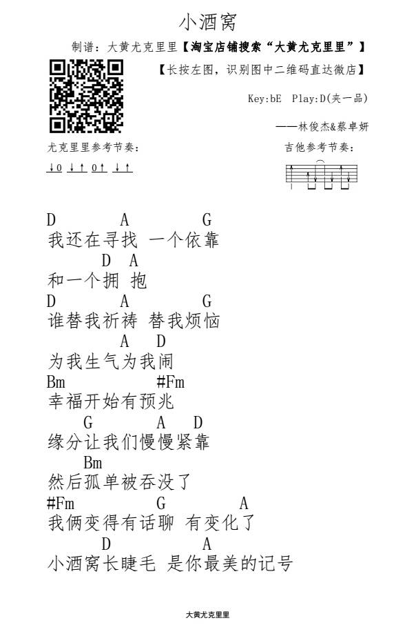 小酒窝——林俊杰&蔡卓妍【每天一张尤克里里谱/吉他谱:...
