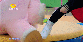(“百米飞人”张培萌哥哥为咕噜快步捡书)