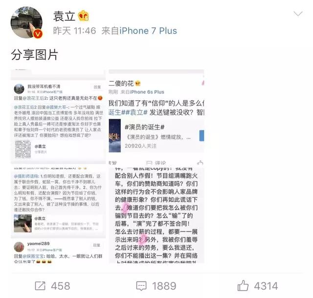 晚间,袁立再次更博表示,开始只是为了筹劳才参加《演员的诞生》,但后来被其背后错综复杂的操作给缠蒙了,忍无可忍跳出来阐明了真相。