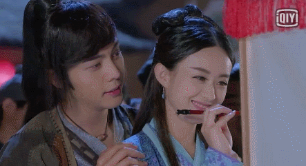 在《蜀山战纪》中小玉和丁大力也甜的要命,丁大力为小玉做花灯,两个人分别在灯笼的两头写字,边写还边看着对方,眼神里满满的全是爱。