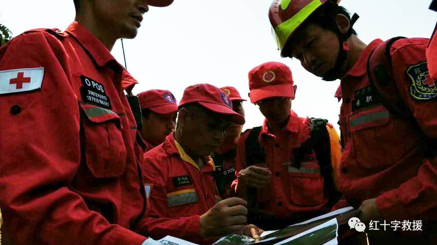 东阳市农商银行红十字应急救援队在接到友队的协勤电话后,立即组织10多名队员参与救援。17日下午13点左右,我队与义乌队、浦江队会合,经过简单的交流、分工,将50多名救援队员分为8个小组,对东上村村后的山地进行分区域、网格化搜寻。