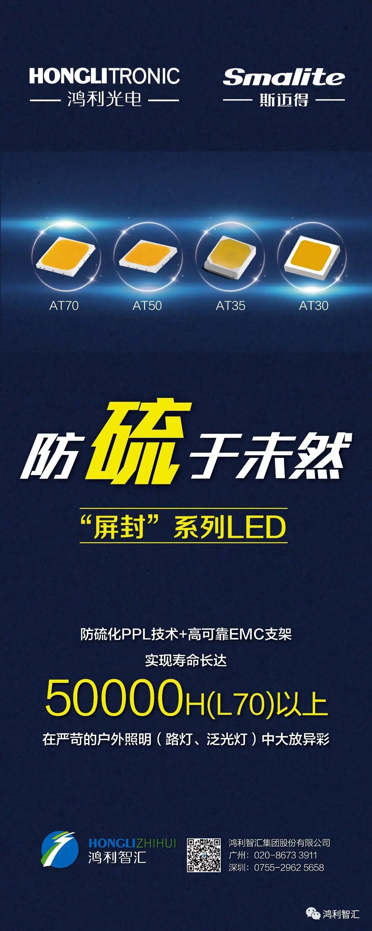 鸿利智汇通过深入研究外界物料对LED的入侵路径,研发出先进独特的PPL技术,彻底解决LED器件因硫化、氧化、溴化引起的发黑问题,具有更高的信赖性、可靠性、和超长寿命。他表示:“公司日前推出的新品 “屏封”系列LED产品,覆盖从PPA +PPL、PCT +PPL、EMC+PPL等全系列的SMD LED 产品,客户可以根据应用需求选择匹配的防硫化产品方案。”