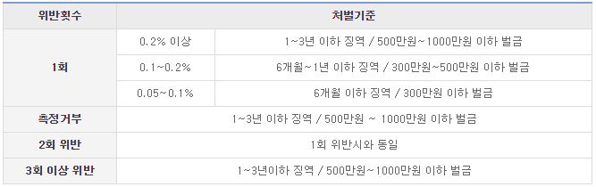 单纯酒驾的话将处以3年以下有期徒刑或1000万韩元以下罚金;