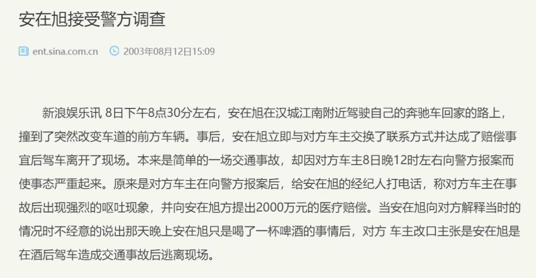 2003年安在旭曾经因为酒驾而发生交通事故。