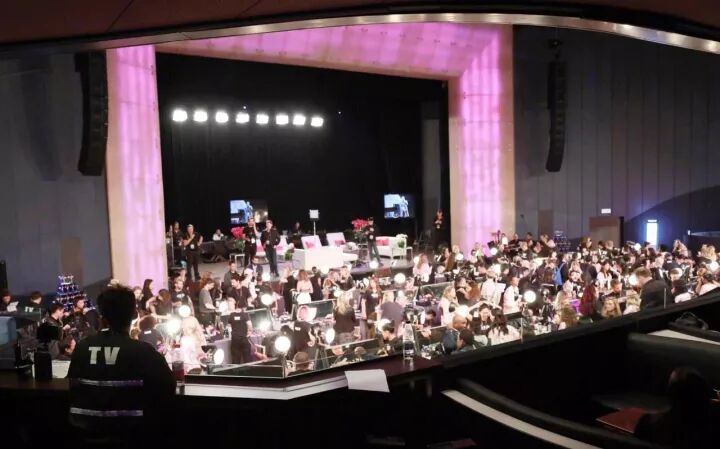 55位模特出现在T台上,舞台设计有87个变化的造型,400多位工作人员负责模特们的临场换装,32位化妆师负责模特们的妆容,27位发型师负责头部造型。