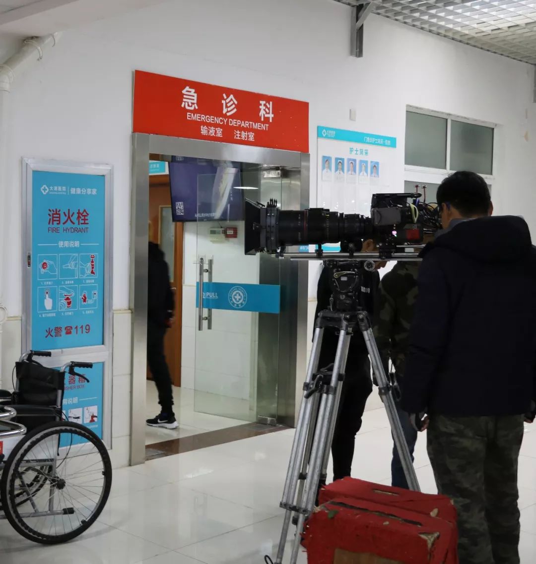 中午一上班,急诊室内外人头攒动,人群熙熙攘攘,摄影器材“长枪短炮”林立,“大港医院”字样被保留了下来,不知道摄制组后期会不会采用呢!