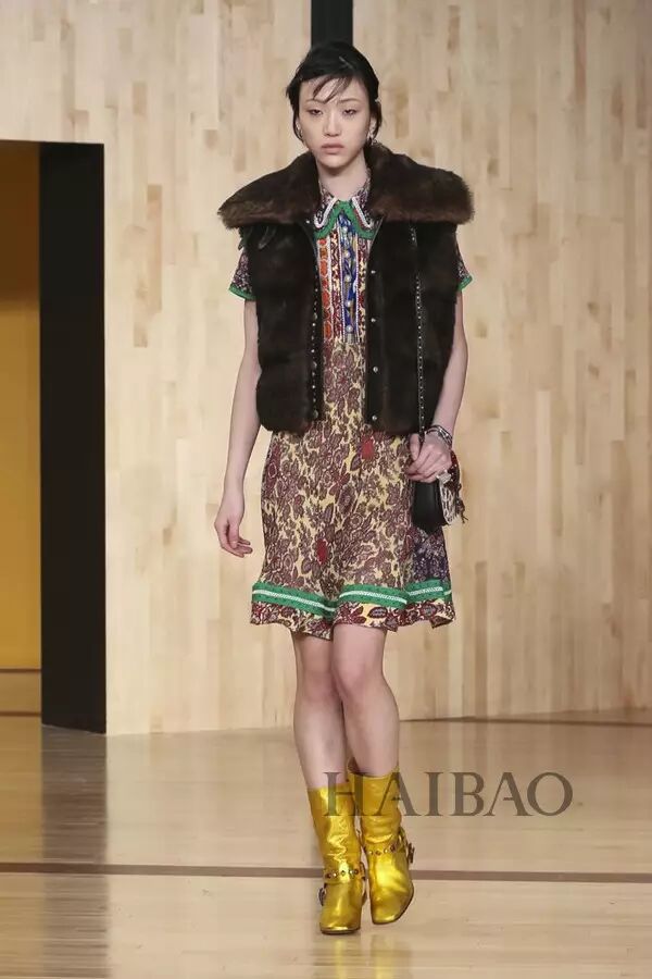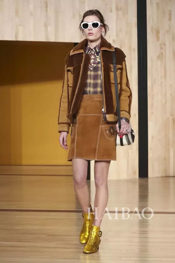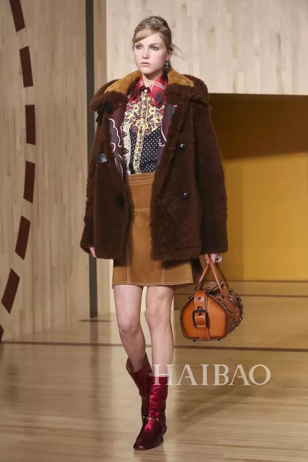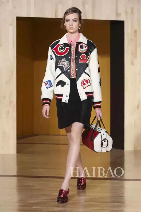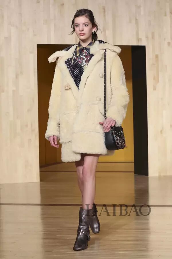 款式上,这一季遵循了COACH以往的休闲风格,皮草一体的外套和皮草用心保留了其原始的质感,不过分修饰。女孩儿的活力朝气被衣服上的贴画所拢络,玩趣的图案散发出美式的休闲风情。摩登girl与运动女孩之间,复古的乡村印花和新派设计感的契合,柔美但不缺乏坚毅。