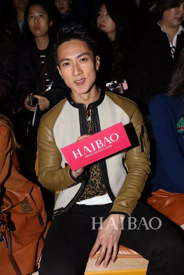 吴尊的拼色机车夹克和豹纹内搭也来自蔻驰 (COACH) 2016春夏系列,在现场和报友们Say Hi。