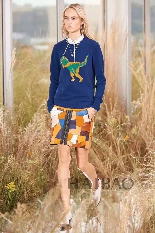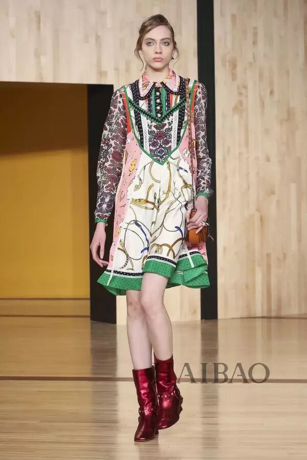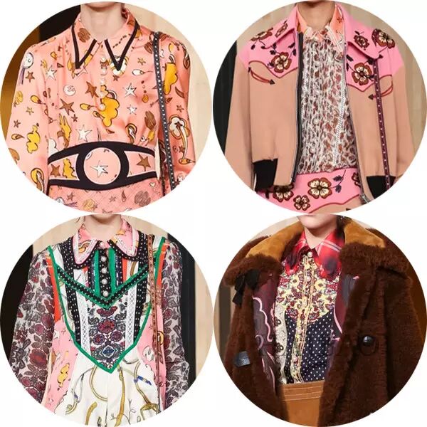 在蔻驰 (COACH) 2016秋冬女装秀场上,碎花、波点、格纹与街头感十足的拼贴手绘风格印花在轻快的秋冬配色下在珍珠扣饰的搭配下而愈发年轻化。