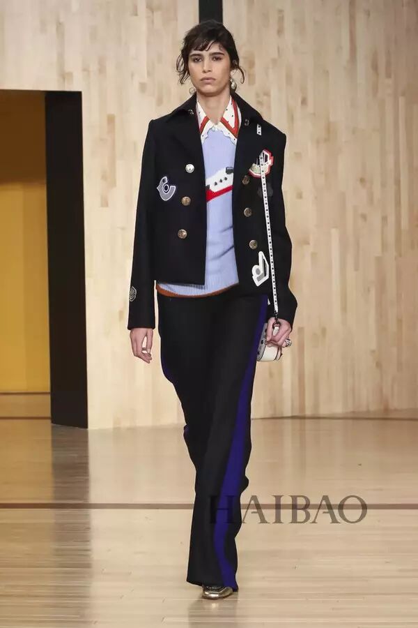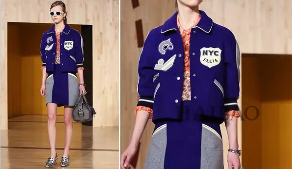 棒球衫的轻松感在蔻驰 (COACH) 2016秋冬女装秀场上表现的格外鲜明。棒球衫外套被标榜出各样新奇款式,蓬松的廓形羊腿袖最先造势!不同的是,运动风格的棒球衫被裙装点化,但这并不影响它本身的运动气息,反而活力俏皮。讨喜的A字形裙也缀上像素点的花纹装饰,以新颖及充满活力的方式将异种风格单品巧妙融合。