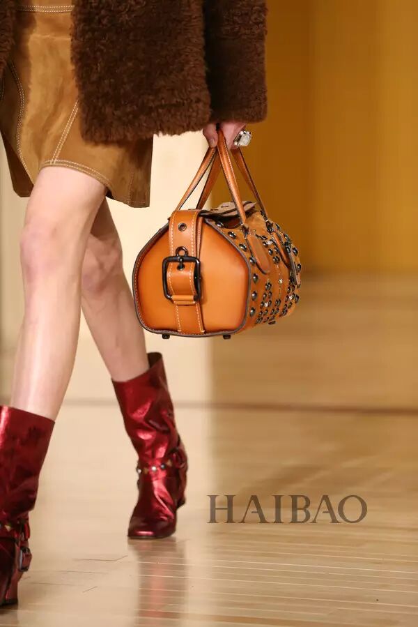 实用性满分的水桶形手袋在蔻驰 (COACH) 2016秋冬女装秀场成为主角,大地色系与酒红色在亮橙色的点缀下而暖意十足,铆钉与拼贴的细节处理既俏皮又精致!