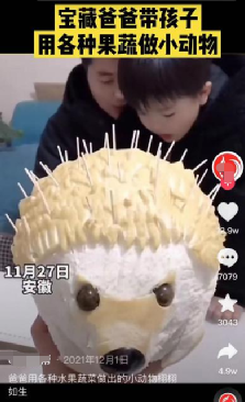 就像抖音上的一位宝藏爸爸一样,每天带孩子用各种果蔬做小动物。