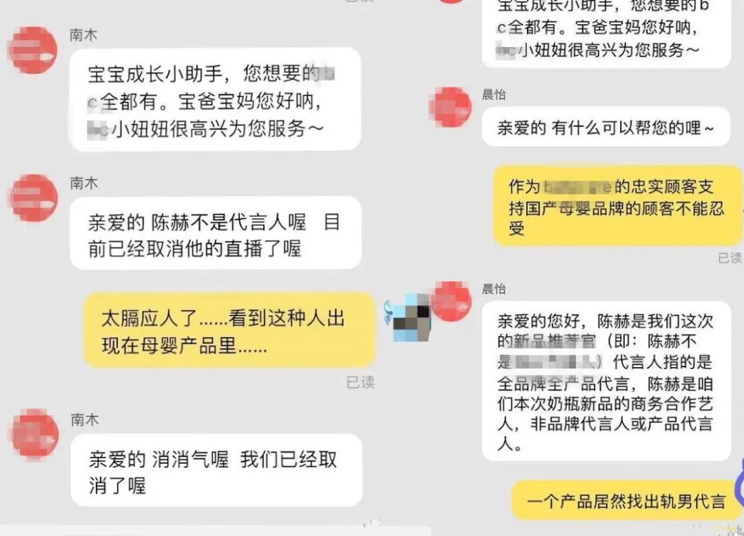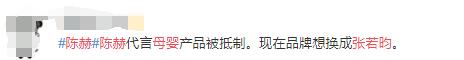最近陈赫为某母婴产品宣传,因为他有出轨张子萱的黑历史遭到不少宝妈抵制和投诉,品牌方刚开始删除微博中一些抵制评论,随着越来越多网友抵制,品牌方认怂,回复网友表示陈赫不是代言人并紧急取消直播,还下架了陈赫的宣传物料,网上有爆料称张若昀夫妇要顶替。