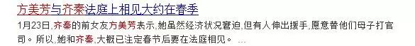2001年8月,齐秦前女友方美芳面对齐秦和王祖贤的婚讯,将其告上法庭,控诉其恶意遗弃,被爆已有私生子,并索赔1500万台币的抚养费。王祖贤再次成为话题中心。