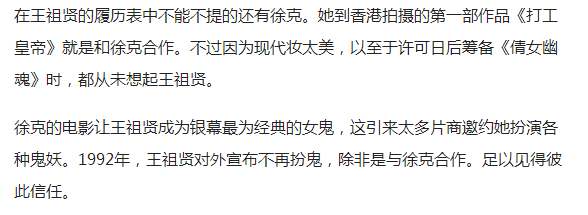 徐克回忆说,当时只和王祖贤说了《倩女幽魂》是个灵异片,却没有说到聂小倩的角色需要与许多男演员发生关系。开机后,亲热戏太多让王祖贤拍摄时经私下和他抱怨。