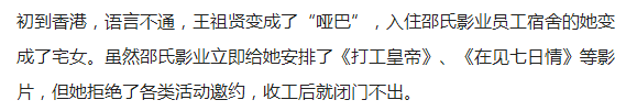 对比许多娱乐圈新人忙着积累人脉,她的避世是难得一见的。但王祖贤很执拗,她说合约里只是约定演戏,如果要我去其他的party,我可以告他们。