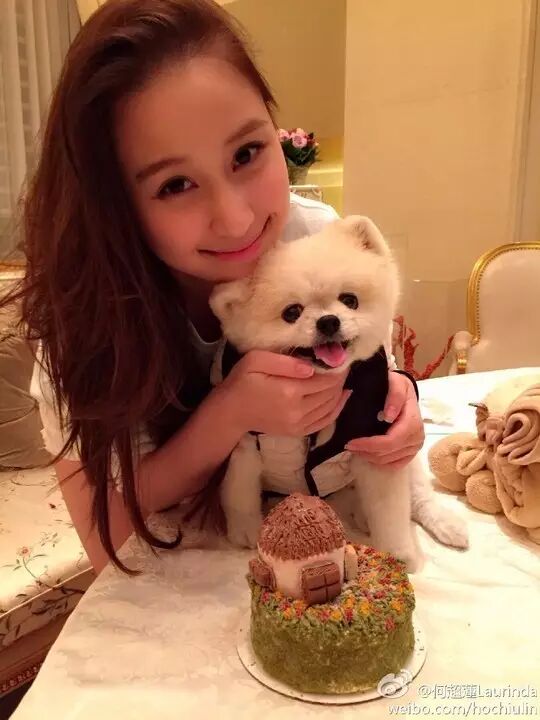 比如这张,和狗狗合照看起来就是很温柔的样子。