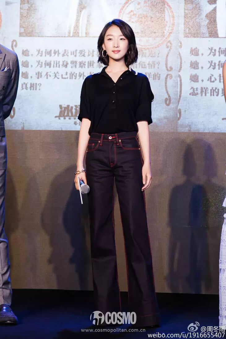 ▲电影《冰河追凶》新闻发布会,周冬雨衬衫搭配长款西装裤,帅气又干练,现在小姑娘驾驭时装的可塑性真的超强啊!