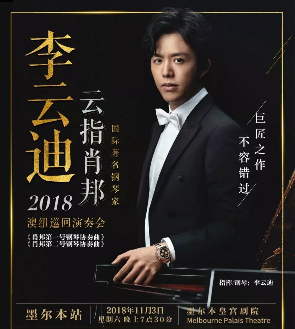 10月-11月,誉满全球的中国钢琴家李云迪将首次造访澳洲和新西兰,现场演绎肖邦经典! 澳洲的盛夏,唯有音乐可以解暑,今年与“颜值与才华兼并”的钢琴王子李云迪有个约会。