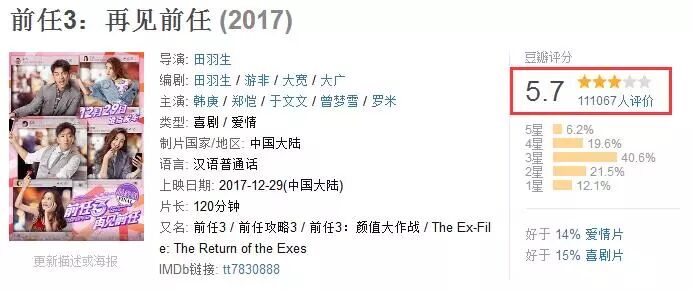 都说都市电影是烂片,结果被《前任3》打脸了吧!
