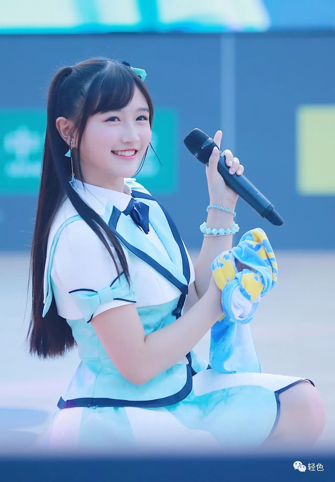 其甜美的外表加上治愈系一样的笑容在舞台上闪亮极了,就像一只小精灵一样。