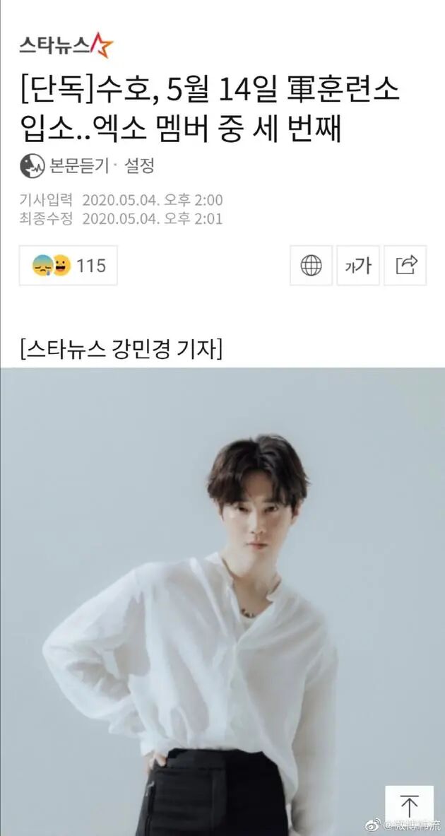 据韩媒报道 金俊勉(SUHO)将于5月14日进入军队训练所正式入伍。他也成为继金珉锡(XIUMIN)、都敬秀(D.O。)之后第三位入伍的的EXO成员。