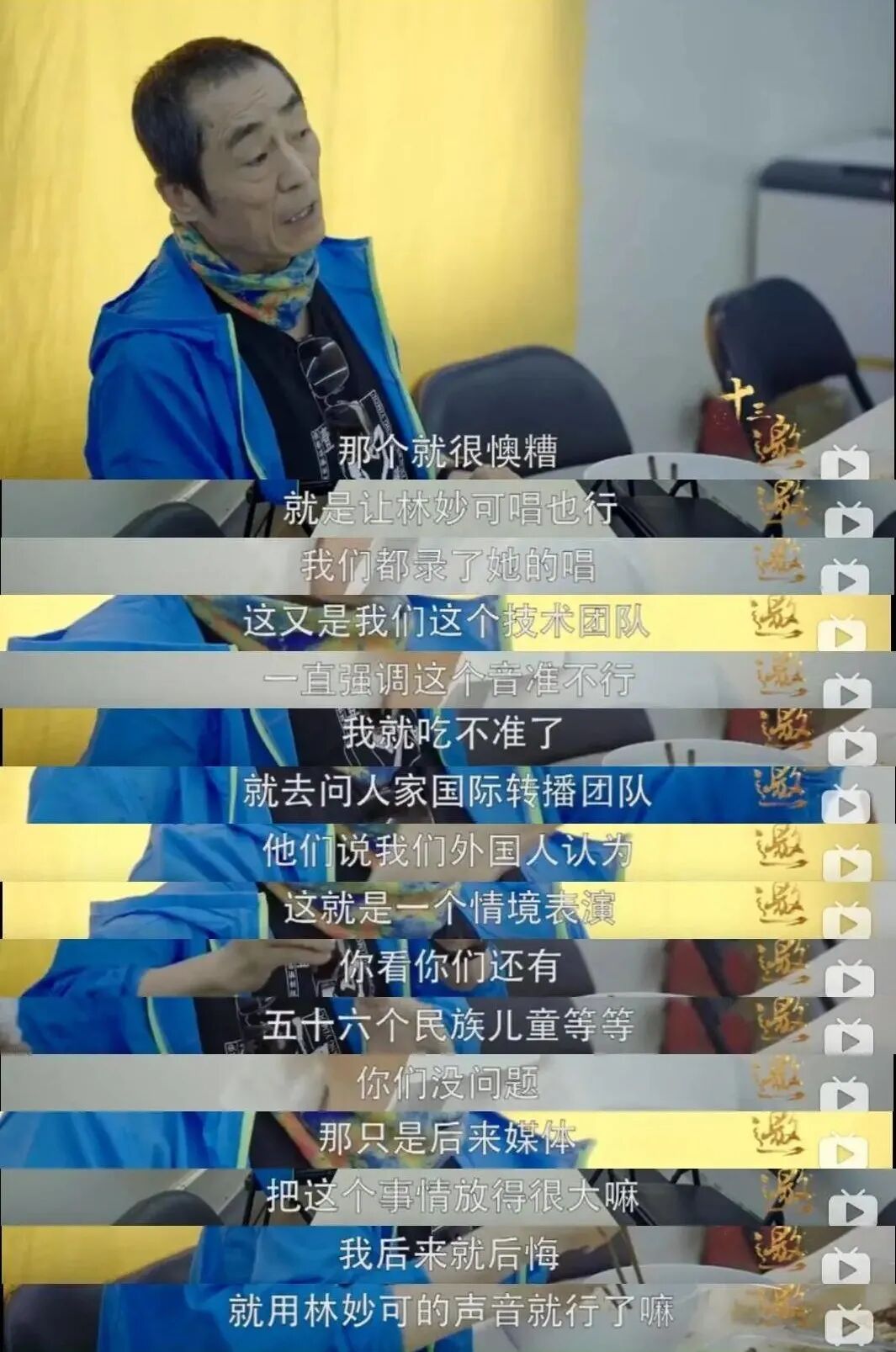 因为张艺谋解释得太晚,导致林妙可当时明明录了歌,却被误会了很多年“有后台”、“抢镜头”。