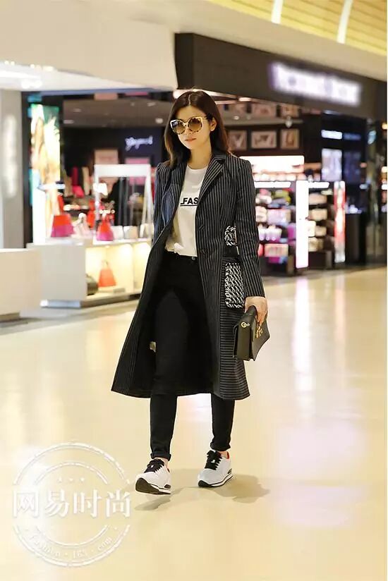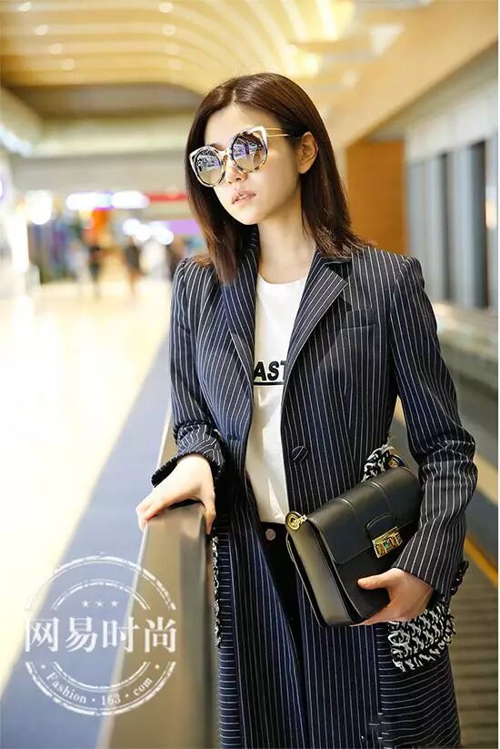 前几天去巴黎的机场照,她身穿Altuzarra条纹大衣简约有型,搭配Olivia peoples猫眼形状太阳镜干练又不失俏皮,而手上搭配的包款正是Lanvin 2016春夏全新JiJi Bag。▼