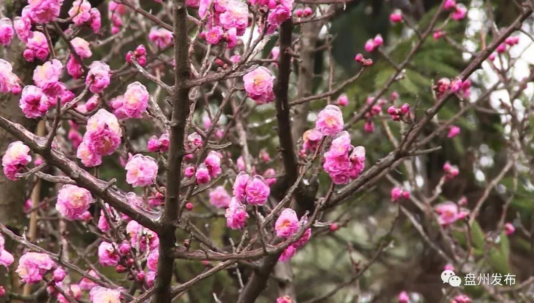 年年岁岁花相似,岁岁年年景不同。又是一年梅花开,近日,在盘州市红果城区的后山公园里,一棵棵梅花竞相绽放,为新春佳节的到来又增添了喜庆。冰雪还未消融,但丝毫没有影响梅花的开放。花瓣上覆盖着一层薄冰,显得更是晶莹剔透,如珍珠,似玛瑙,艳丽无比。