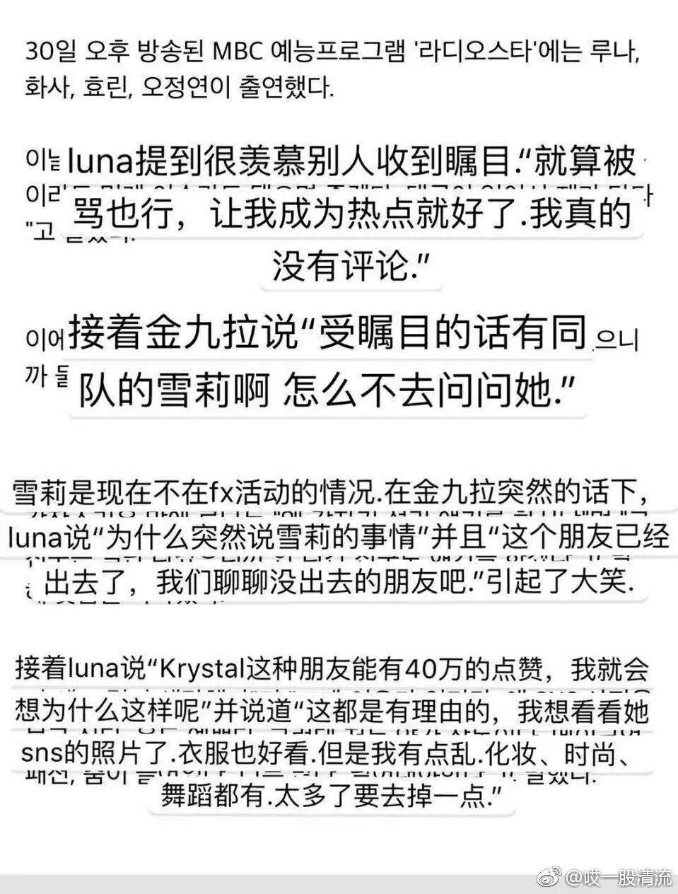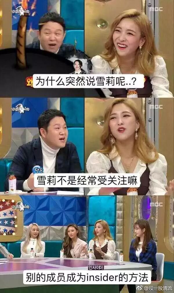 最近不是luna发了solo,所以就上了很多节目,然后没想到主持人金九拉突然cue了雪莉,让luna和她学。