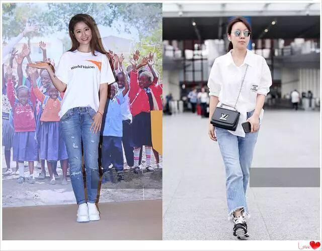 简单的白色T恤加上牛仔裤的穿着方式本身也就具有很好的减龄效果,让看起来依旧年轻的林心如给人的感觉更加的青春活力。