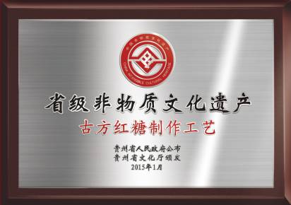 2014年古方红糖生产工艺被列入贵州省非物质文化遗产,2016年生产地获批省级非物质文化遗产生产性保护基地。