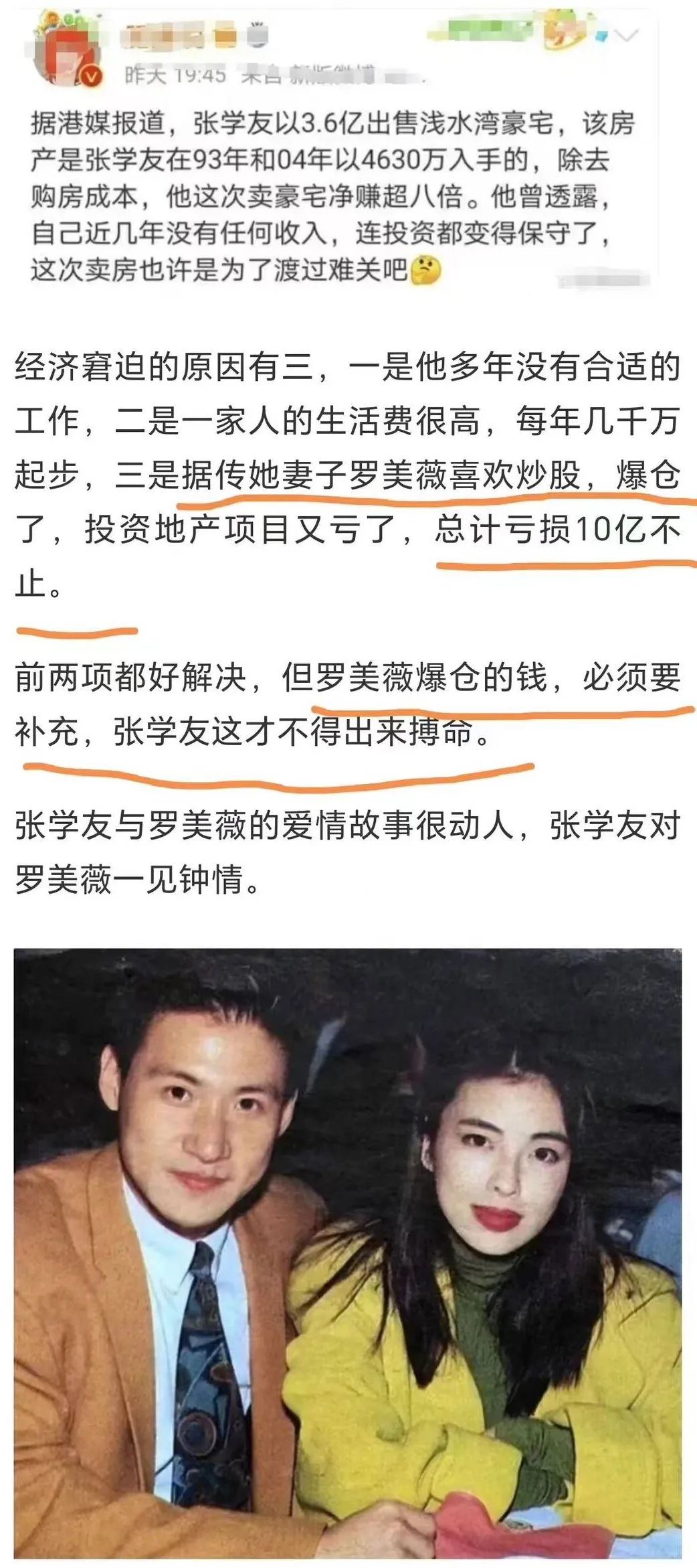 看着女友的留言,想到再也没有罗美薇陪伴的日子,张学友好像突然清醒起来。