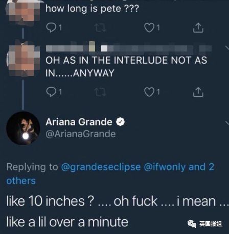 一边虐狗,也一边玩得欢乐。当A妹在推特上回答粉丝提问时,她兴奋地透露自己有一首新歌,名字就叫Pete。粉丝问这首歌多长时,她还皮了一把:大概10英寸?……我的意思是超过一分钟吧。