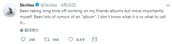 许多歌手包括制作人/DJ的社交平台下面,除了一些迷弟迷妹的表白留言,最多的恐怕就是催新专的留言了,Skrillex也不例外,作为全球最受欢迎的制作人,他的推特、IG下面都有许多粉丝“督促”他好好工作。