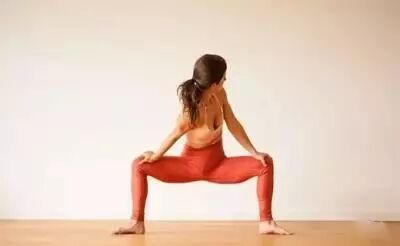 在上一个体式基础上,双手放在大腿靠近膝盖的位置