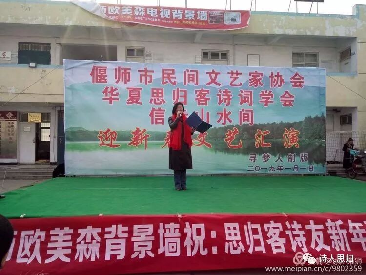 偃师市民间艺术家协会,偃师市华夏思归客诗词学会,偃师信步山水间户外群偃师市欧美电视背景墙共同合办的偃师市民间艺术家,诗友们的新春文艺演出。此次新春汇演有偃师民间知名主持人田变白女士和火流星先生一起主持。