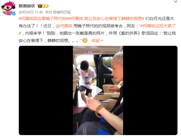 在跟代拍、私生斗智斗勇这件事上,以往艺人们要么忍气吞声,要么爆发冲突,但何晟铭给大家提供了一个新思路,那就是拿镜子遮挡自己反射镜头,用魔法打败魔法,被法律界称为“反骚扰教科书级操作”。