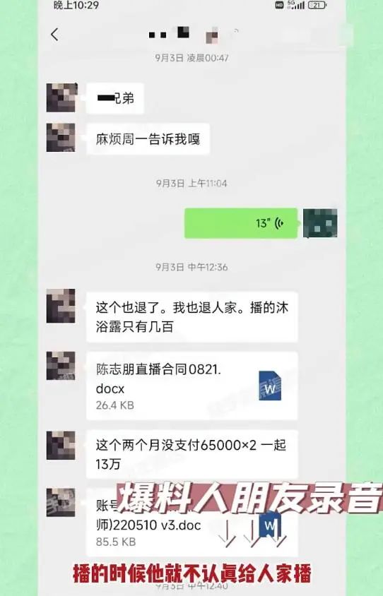 另外,爆料人透露平时工作中,陈志朋经常随意辱骂PUA员工,如果没和他打招呼,就会被骂“你是瞎了还是聋了” ,团队员工都在看心理医生。陈志朋与合作过的多家经纪宣传、直播团队也都有矛盾,不仅直播时不认真直播发脾气,还欠着多家品牌方钱不还。