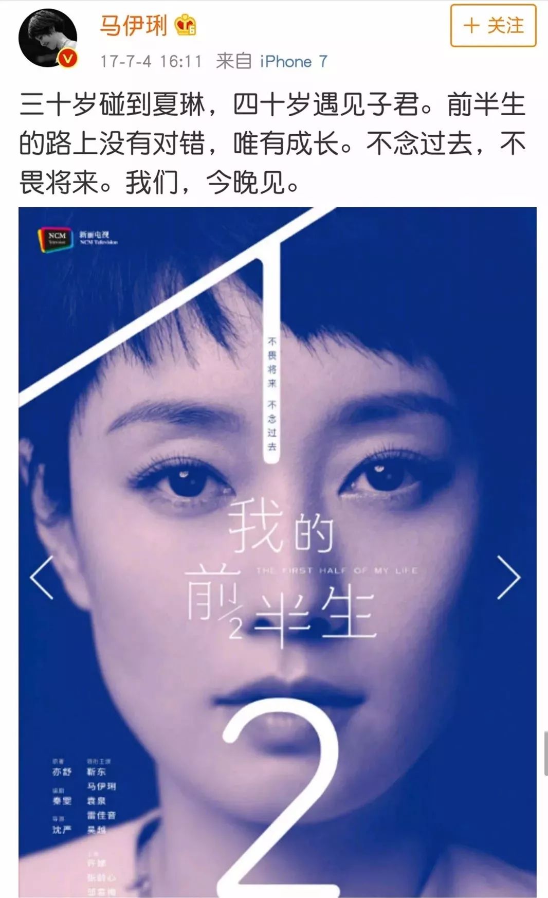 在《我的前半生》热播的时候,马伊琍发过一条微博: